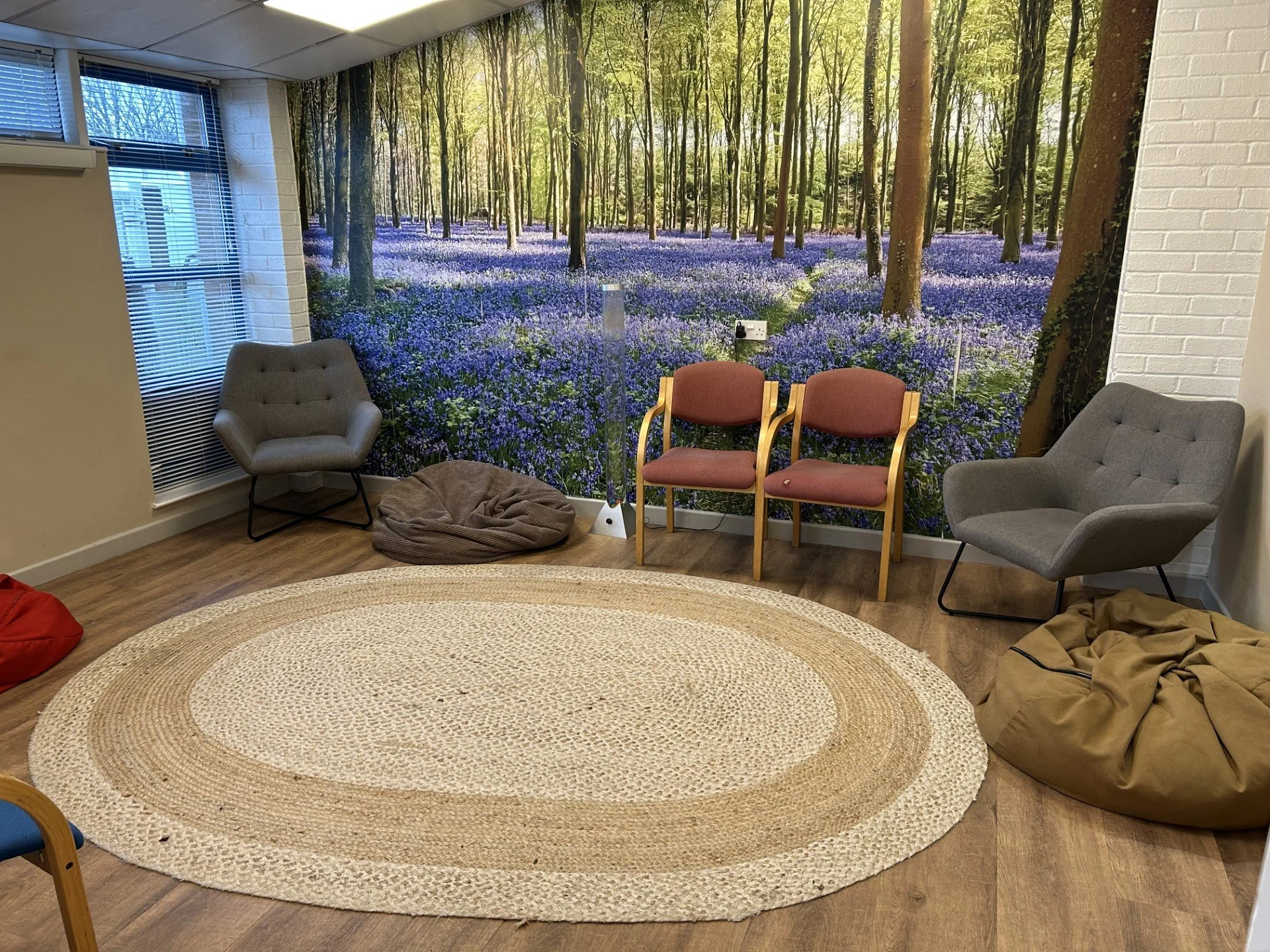 Ideal for 1:1 meetings or therapies, our small group room is a calming environment, with a capacity of up to 10 people.