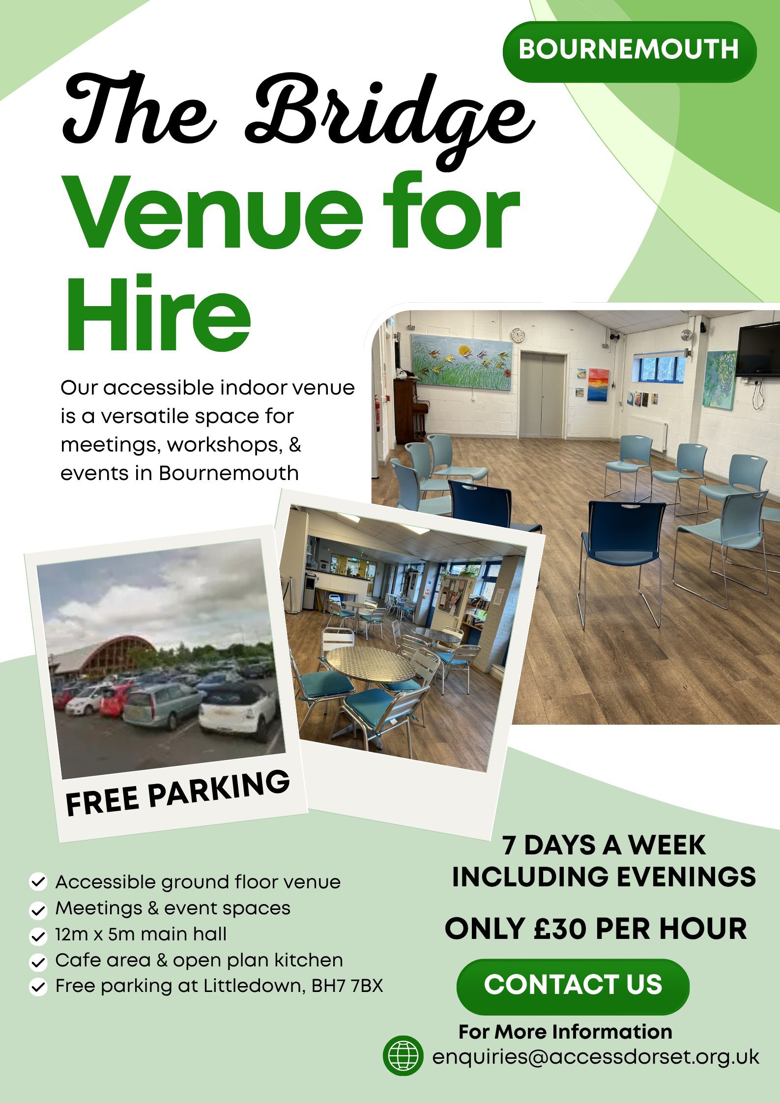 'The Bridge' is a versatile event space managed by Access Dorset.